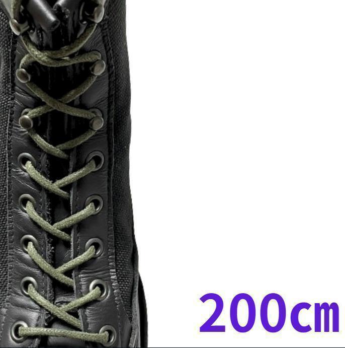 - 13H靴紐 2本 200㎝ 蝋引きオリーブ スモークジャンパー バイクコンバットブーツ ヴィンテージ ブーツ 革靴 古着 メンズ レディース