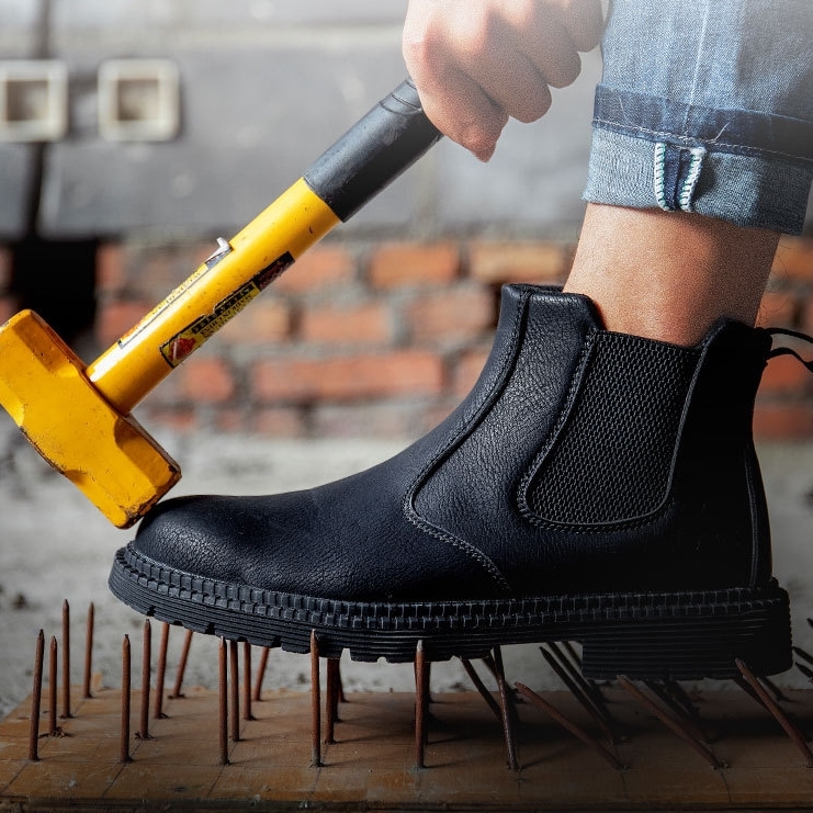- 安全靴 ハイカット メンズ 防水安全 作業靴スニーカー 溶接用ブーツ つま先保護 おしゃれ 耐滑 セーフテ チェルシーブーツ ブラック25.5cm