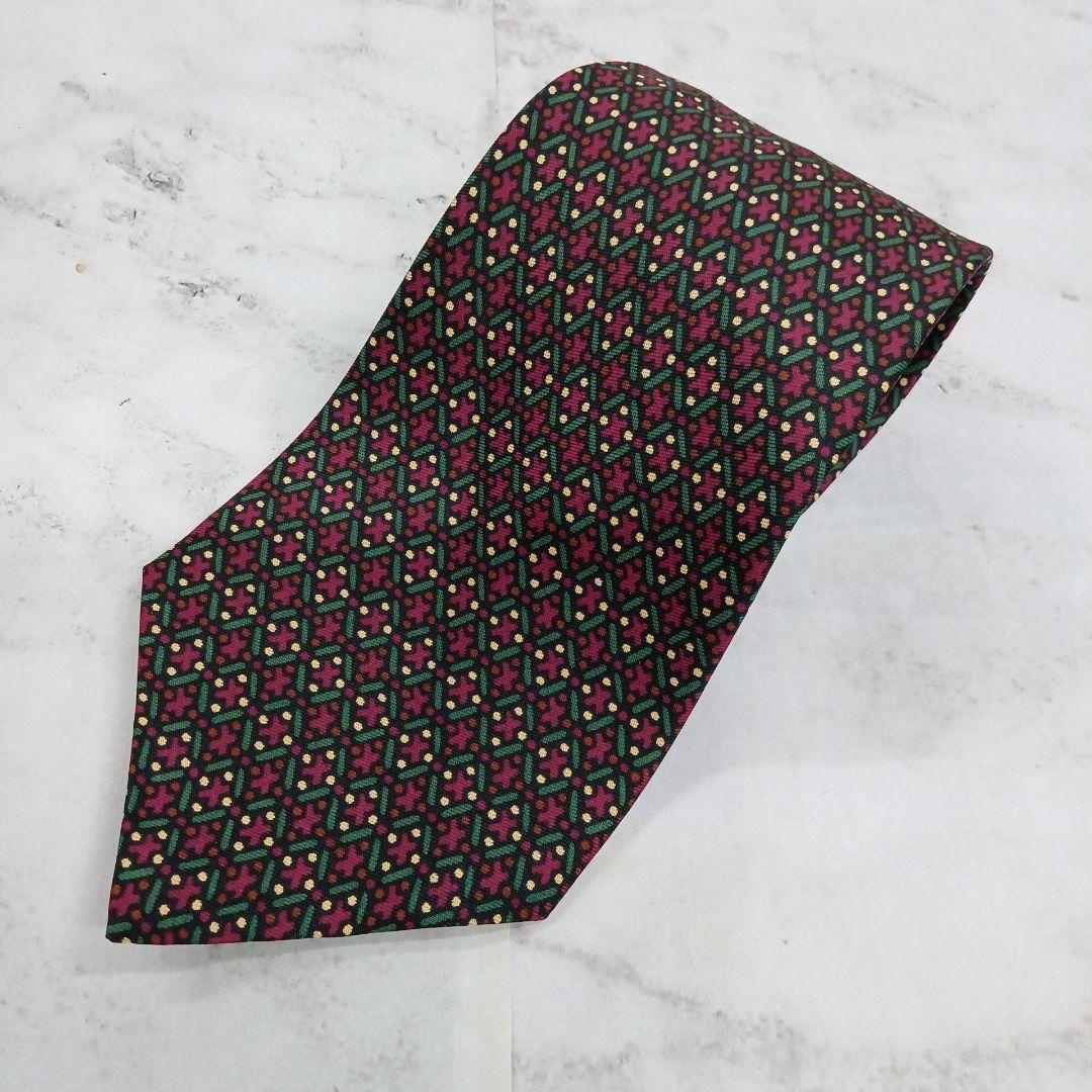- イブサンローラン ネクタイ 深紅 幾何学模様 シルク100% 絹【n953】