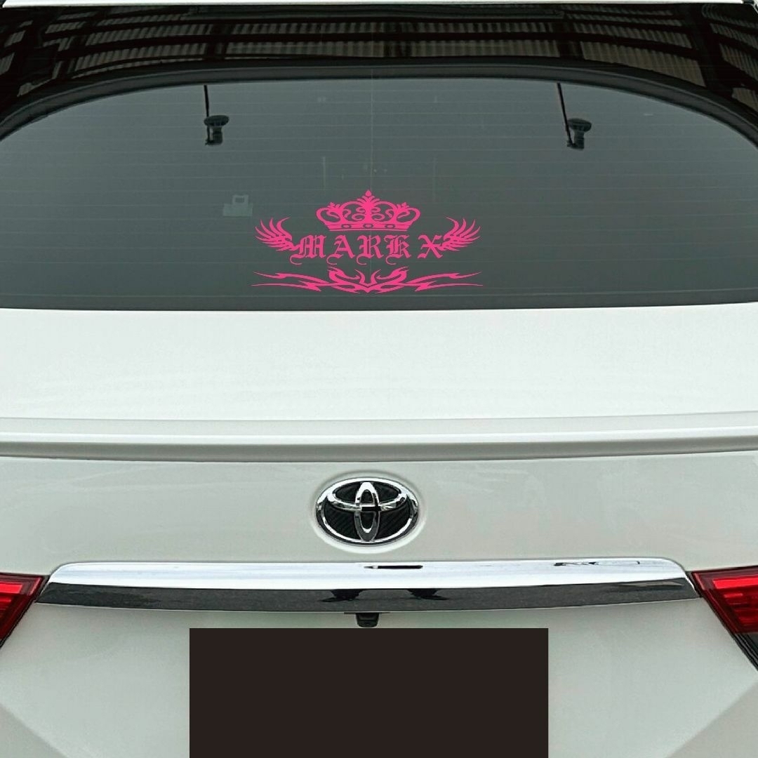 - マークX トライバル 王冠 羽 ドレスアップ カッティングステッカー 転写ステッカー ピンク 色変更可