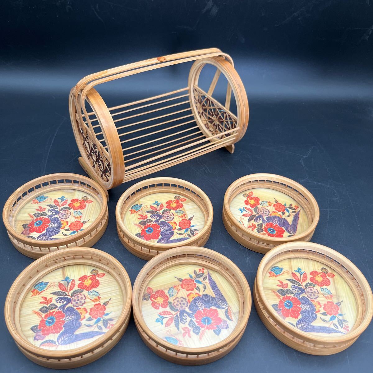 - 竹細工 コースター ガラス 6枚セット 日本 昭和 レトロ 昭和レトロ