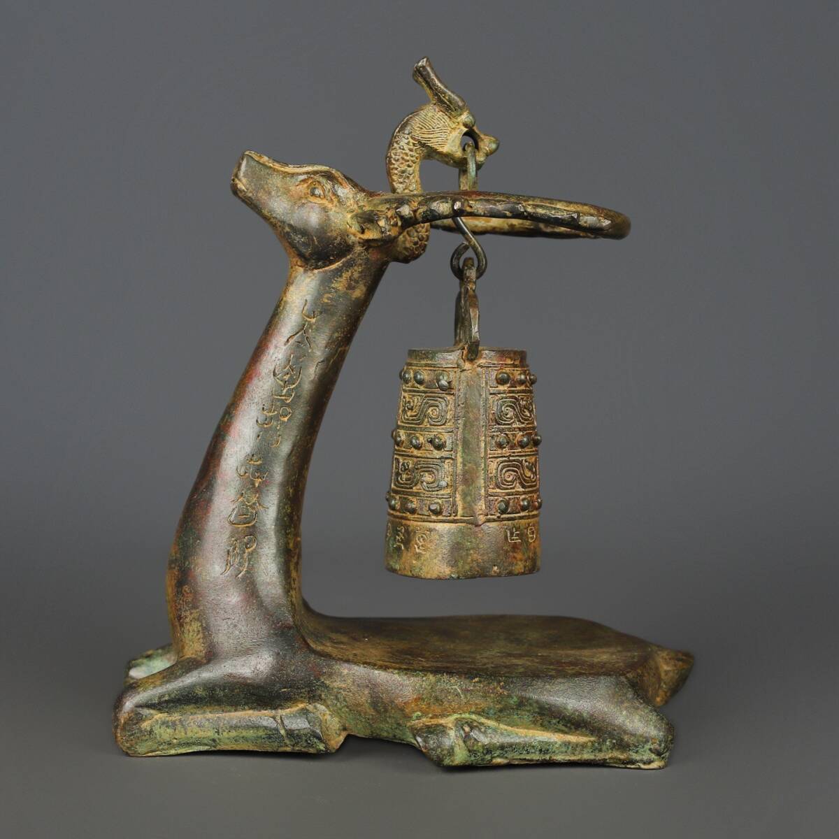 - ▽鴻▽ 漢 青銅製 鹿燈盤 置物 古賞物 中国古玩 中国古美術