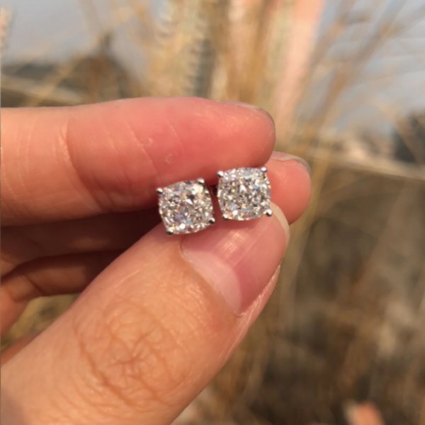 - 「値引希望」連絡で値引 、女性用モアッサナイトピアス、100% シルバー、スパークリング、6x6mm _ Kn
