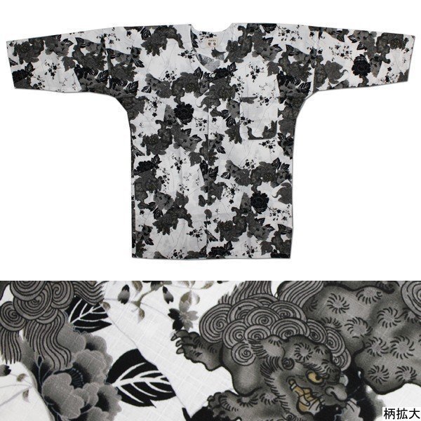 - お祭用品/肉襦袢 鯉口シャツ 唐獅子牡丹 189白 2号(子ども用)