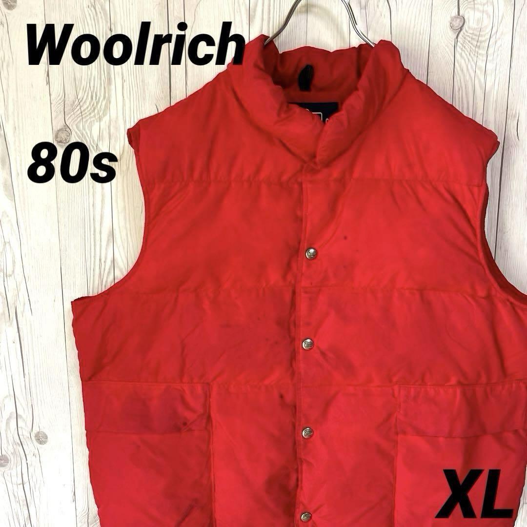 - 80sタグ◆ヴィンテージ古着◆WOOLRICH ウールリッチ ダウンベスト メンズXLサイズ 赤 レッド 80年代古着