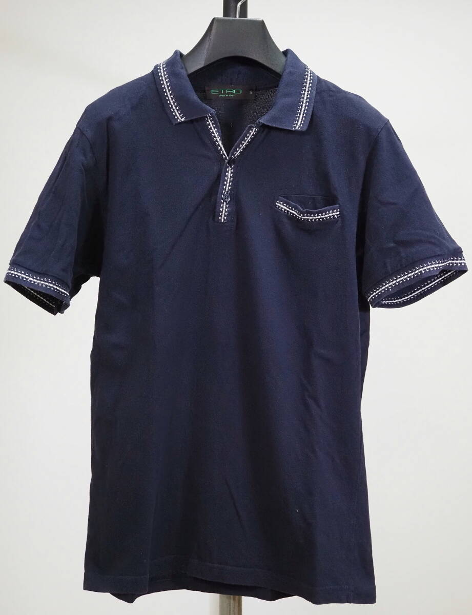 - ETRO エトロ ステッチポロシャツS紺 Italy製