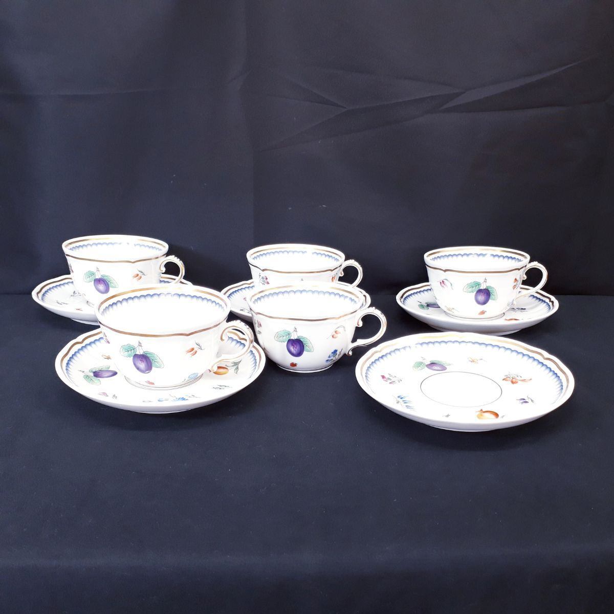 > 【中古】 リチャードジノリ Richard Ginori ティーカップ&ソーサー 5点セット イタリアンフルーツ ホワイト 240ml 洋食器 陶磁器 (DT3)