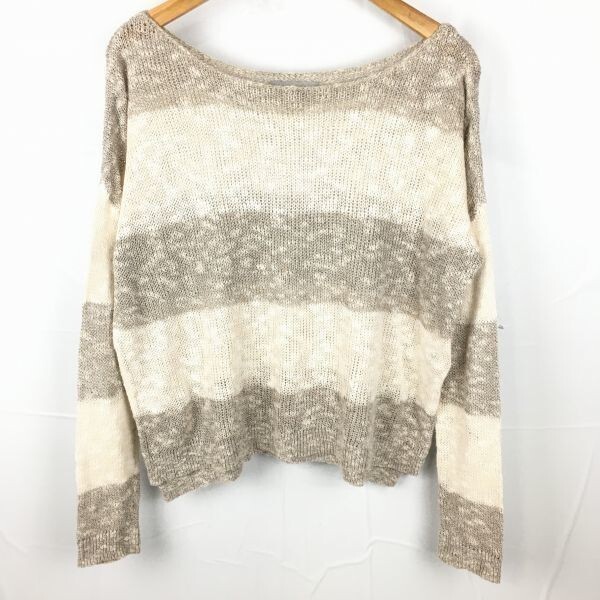 - theory luxe/セオリーリュクス コットン/丸襟/セーター/薄手 サイズ38 茶×ベージュ ボーダー柄 管NO.A14-3