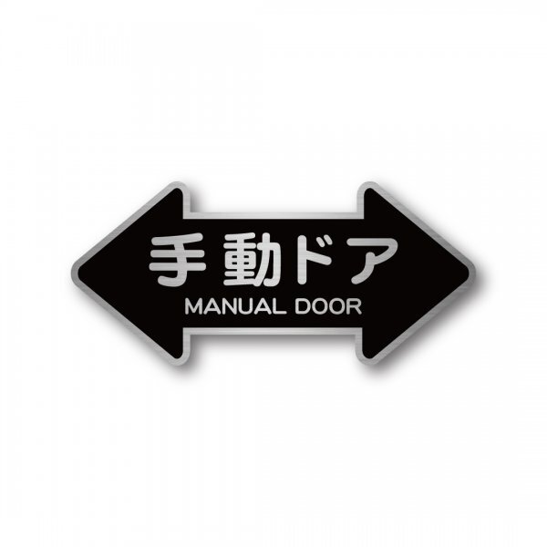 - 手動ドア 引き戸 ステッカー 矢印形 ブラック ヘアライン 新品 マット ラミネート 110mmx50mm 案内 防水 耐熱 シール 国内生産 日本製