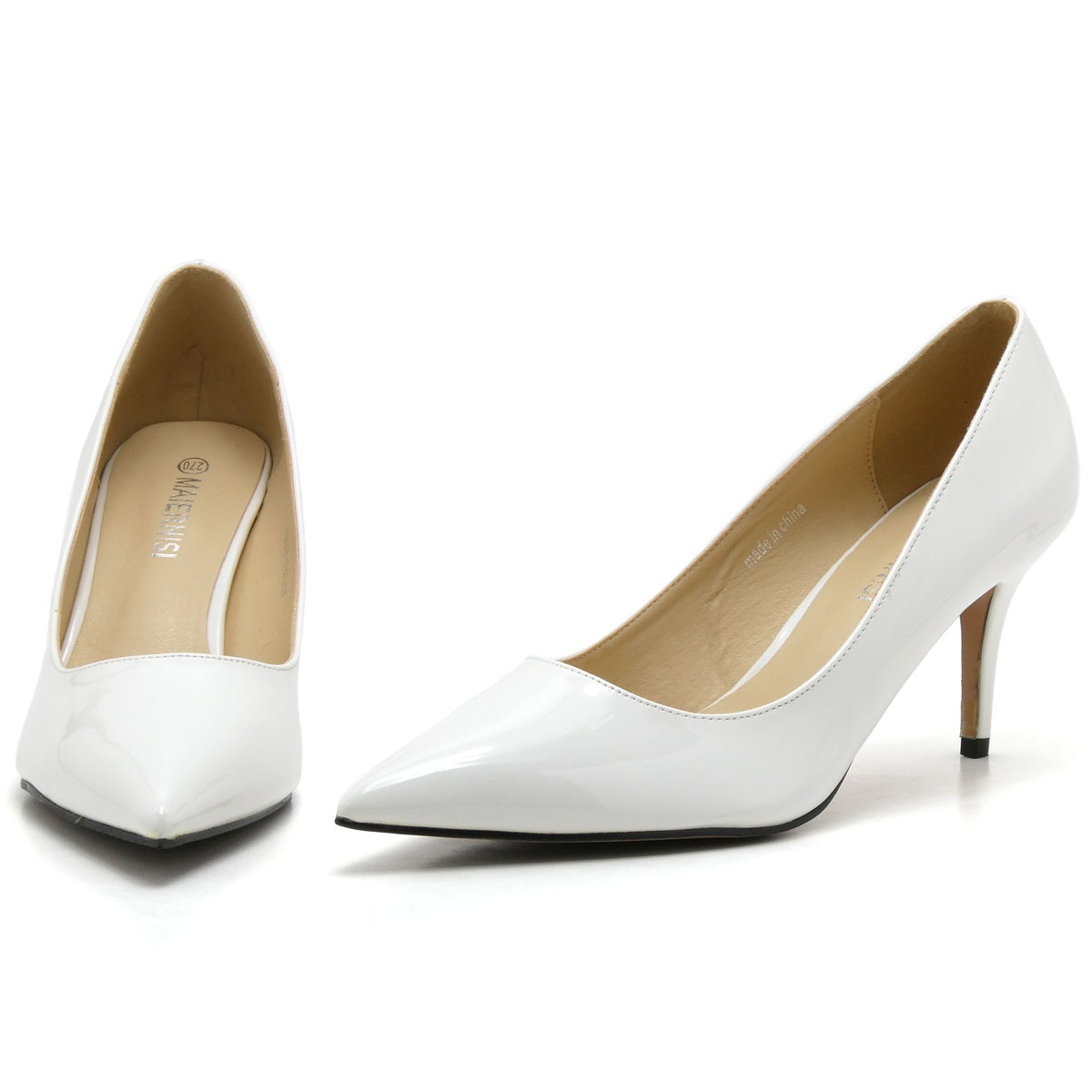 - 新品 大きいサイズ パンプス ホワイト 27cm 131320-44 エナメル調 ハイヒール