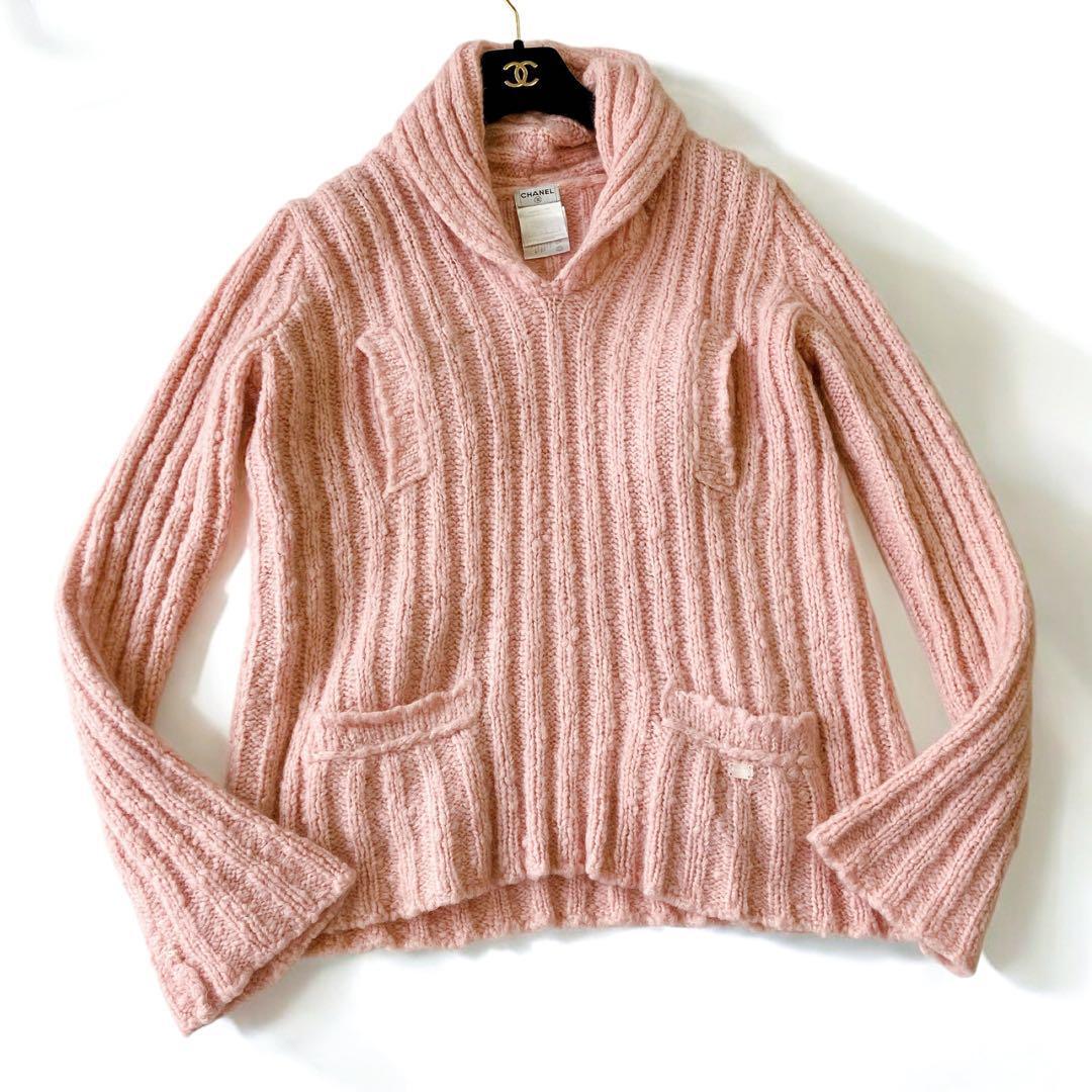 > シャネル CHANEL ニット セーター 04A ウール モヘア ピンク CC 38 アウター ロング レディース 90052151 フランス製 ヴィンテージ 希