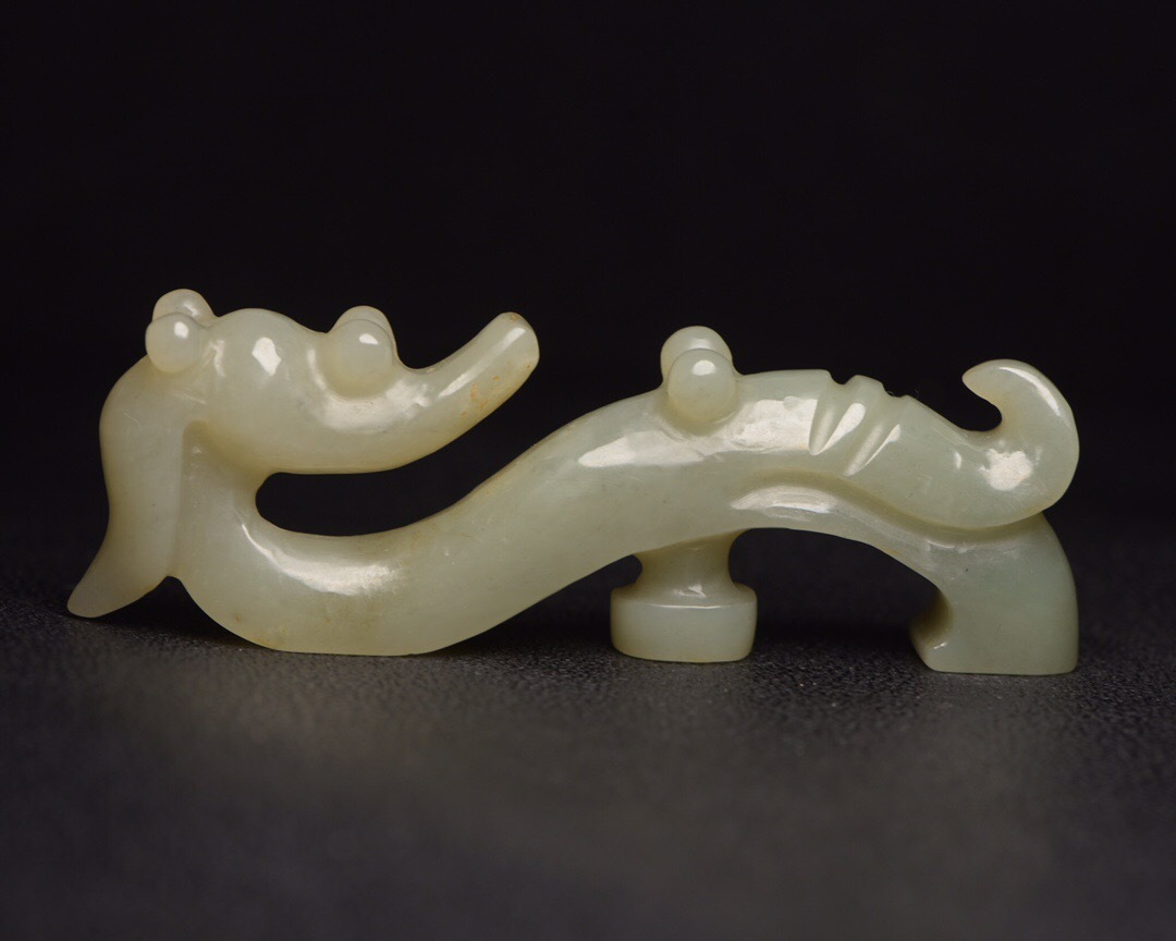 - ▽鴻▽ 和田玉製 細密彫 玉勾 置物 古賞物 中国古玩 中国古美術
