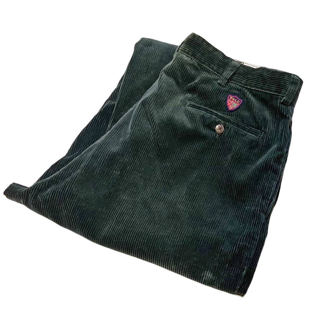 - 希少【オールド 90s Polo Ralph Lauren ポロ ラルフローレン インプリーツ 太畝 コーデュロイパンツ グリーン】旧タグ アンドリュー RRL