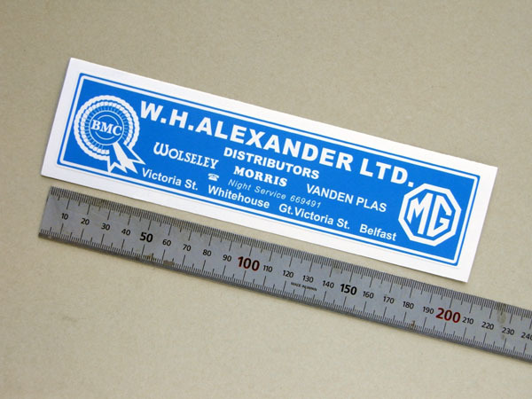 - BMC ディーラーリアウィンドーステッカー 白地 内貼り・静電気ステッカー MG、ウーズレー、モーリス、バンデン・プラ
