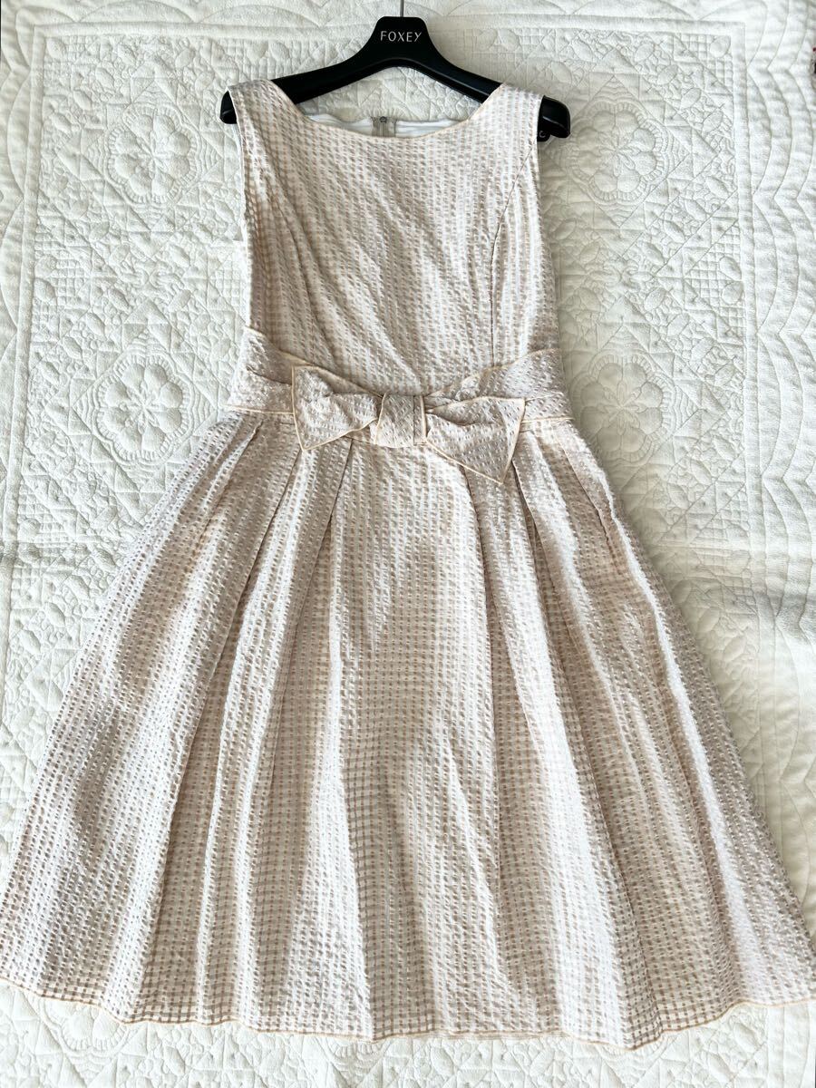 - ★美品★FOXEY★おリボン フィット&フレア ワンピース★40★ベージュ系★