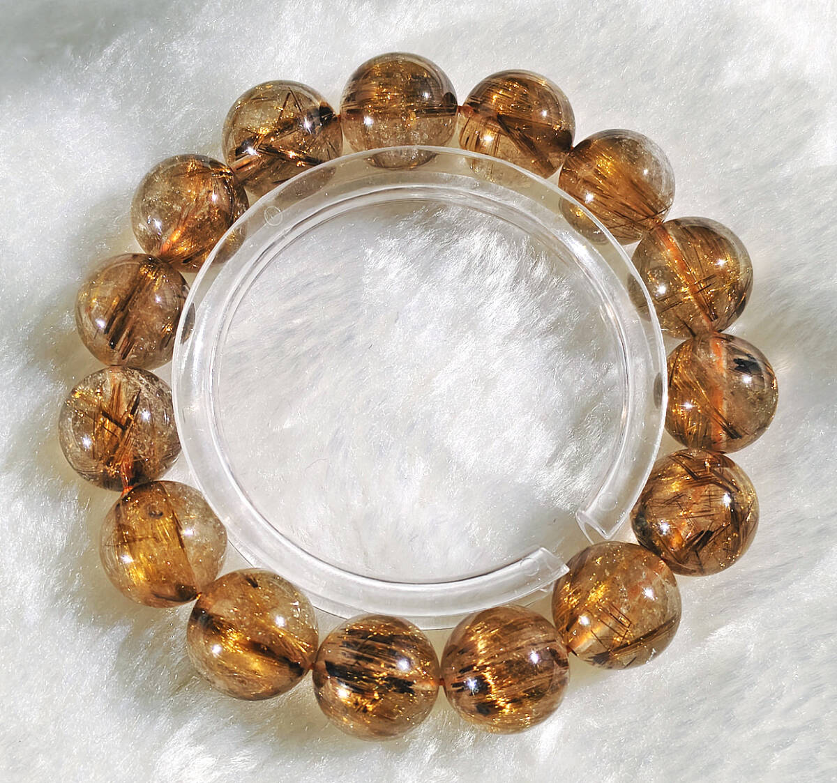> N00713◆Bigstone◆新品*ブラジル産*14mm*銅髪【5Aコッパータイチンルチル】天然石ブレス