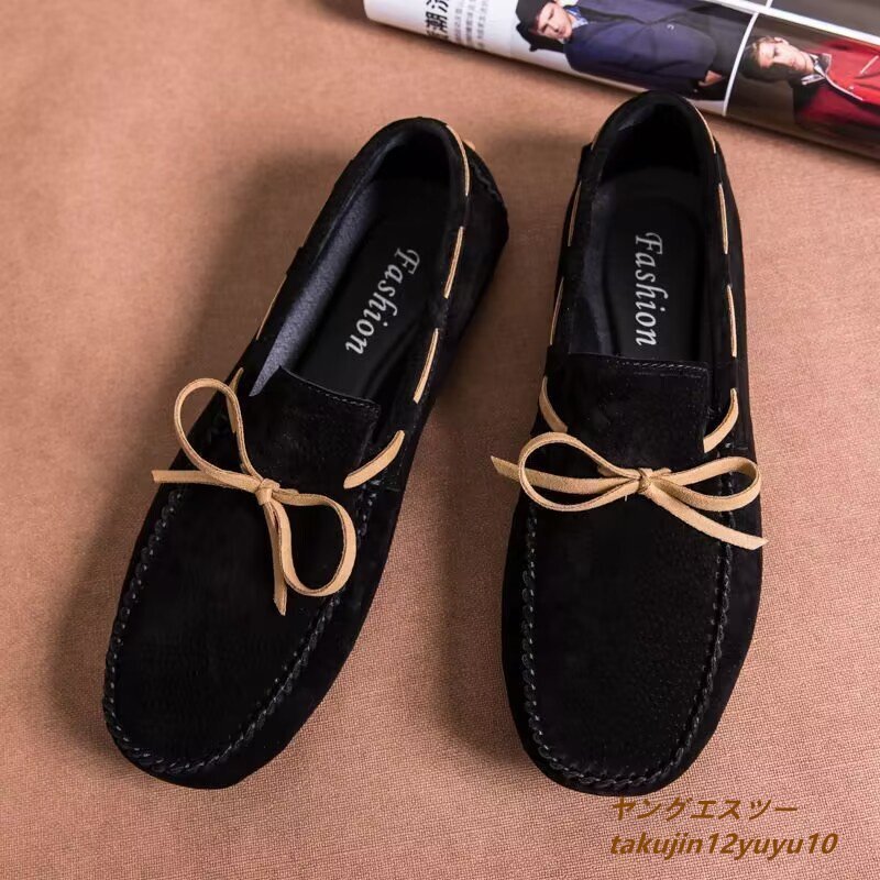 - 人気新作 ローファー スリッポン 本革 メンズ レザーシューズ 新品 ドライビングシューズ 牛革 スエード革 快適 お洒落 ブラック 25.0cm