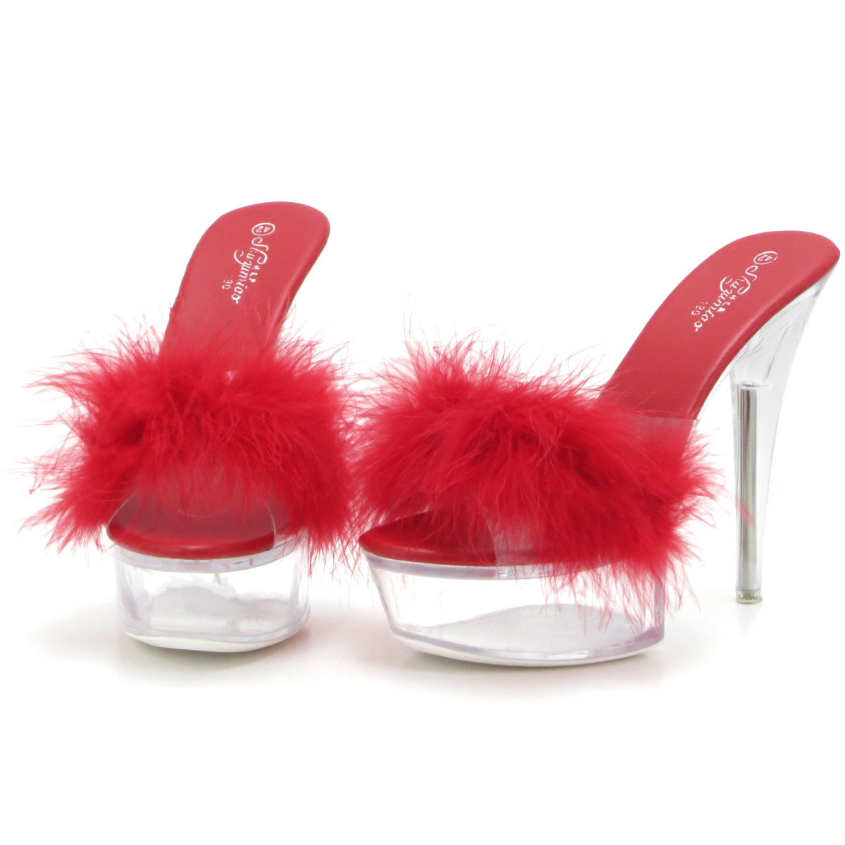> 新品 大きいサイズ ミュール レッド 26cm 132180-42 ファー付き クリアーソール 前厚底ストーム ハイヒール ミュールサンダル