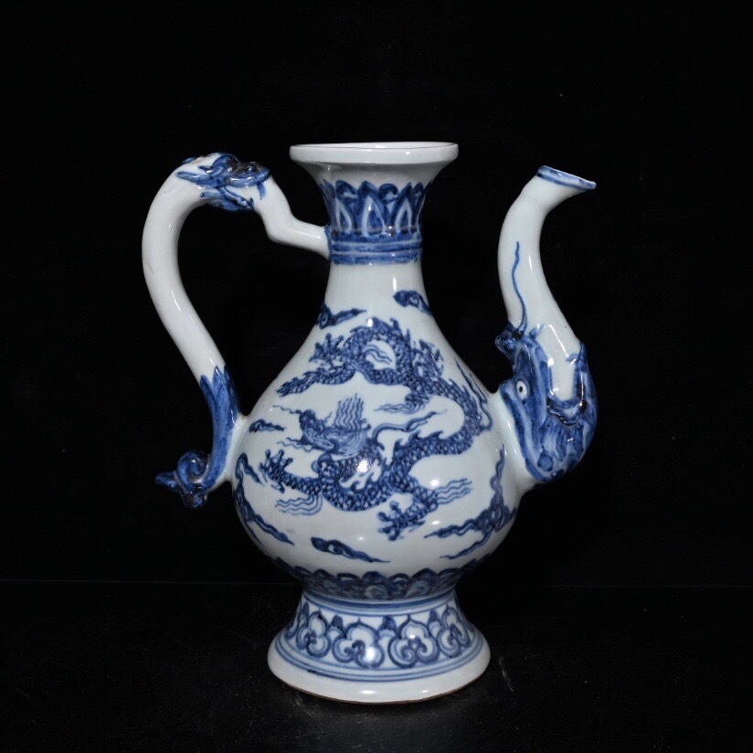 - ▽鴻▽ 明 正德年製款 青花 龍鳳紋 酒壺 古陶瓷品 置物 古賞物 中国古玩 中国古美術