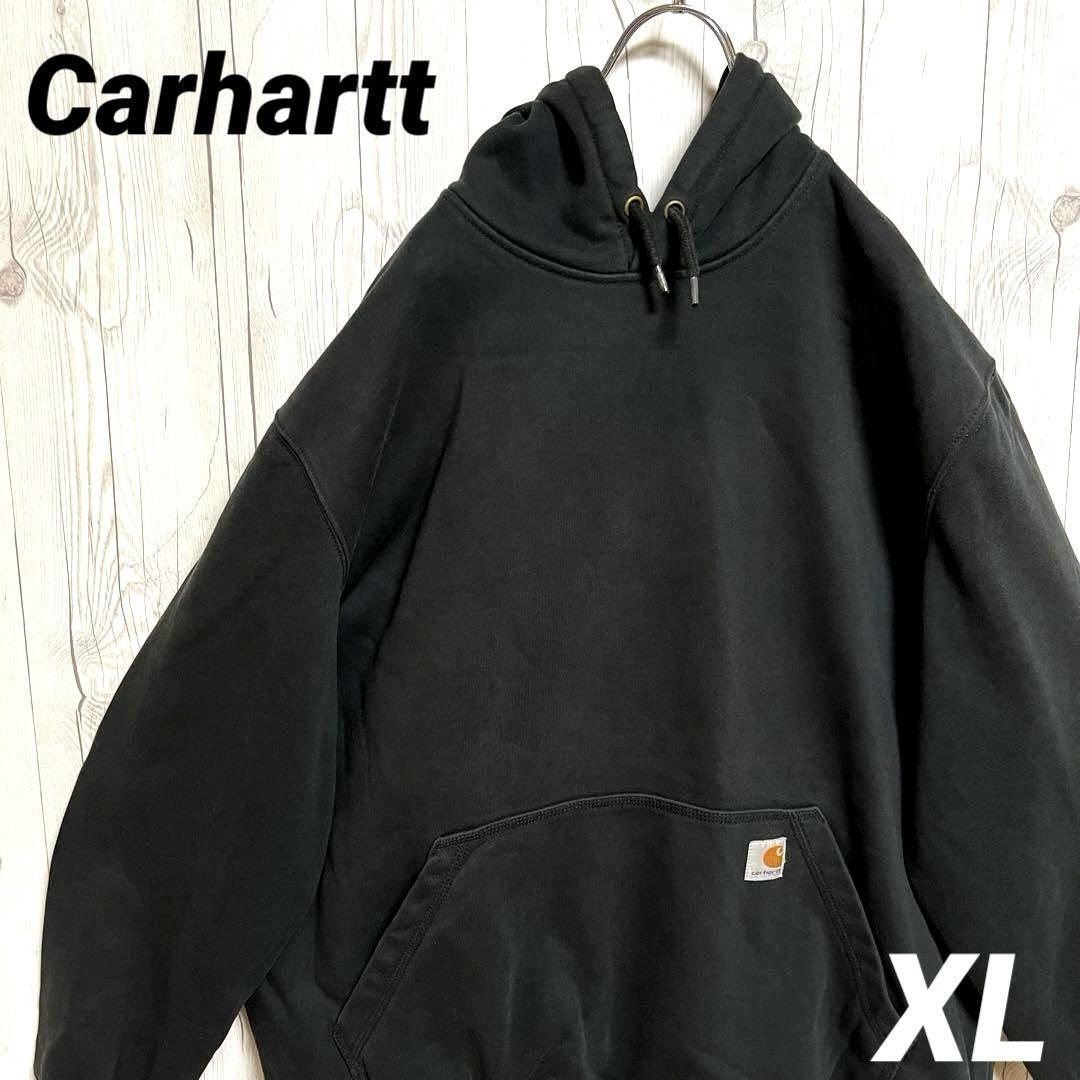 - Carhartt カーハート フーディスウェットパーカー メンズXLサイズ ブラック黒 ブランドロゴ トレナー 大きめビック