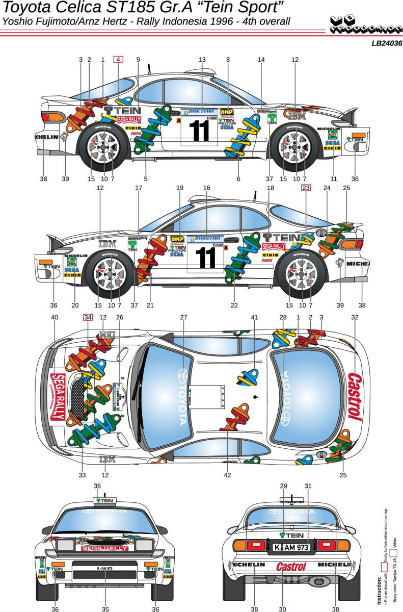 - 1/24サイズ LB PRODUCTION 製 LB24036 シルクスクリーンデカール TOIOTA CELICA ST185 Gr.A Tein Sport