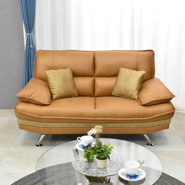 座面下部のワンポイントラインとスチール脚がモダンな印象を与えるソファーです。