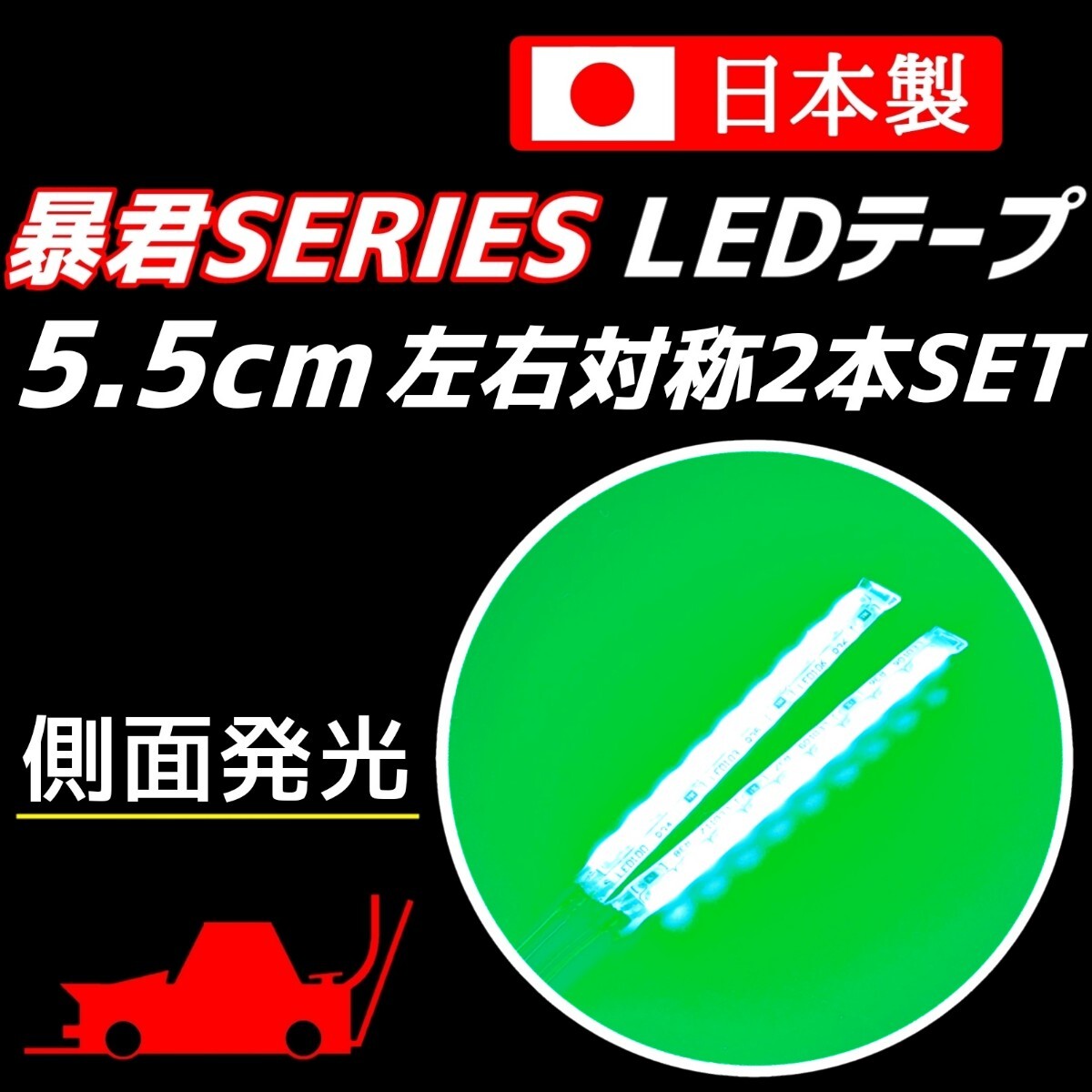 > グリーン 5.5cm 左右2本 側面発光 防水 爆光 暴君LEDテープ ライト ランプ 極薄 極細 12V 車 バイク 5.5センチ デイライト カーテシ 緑色