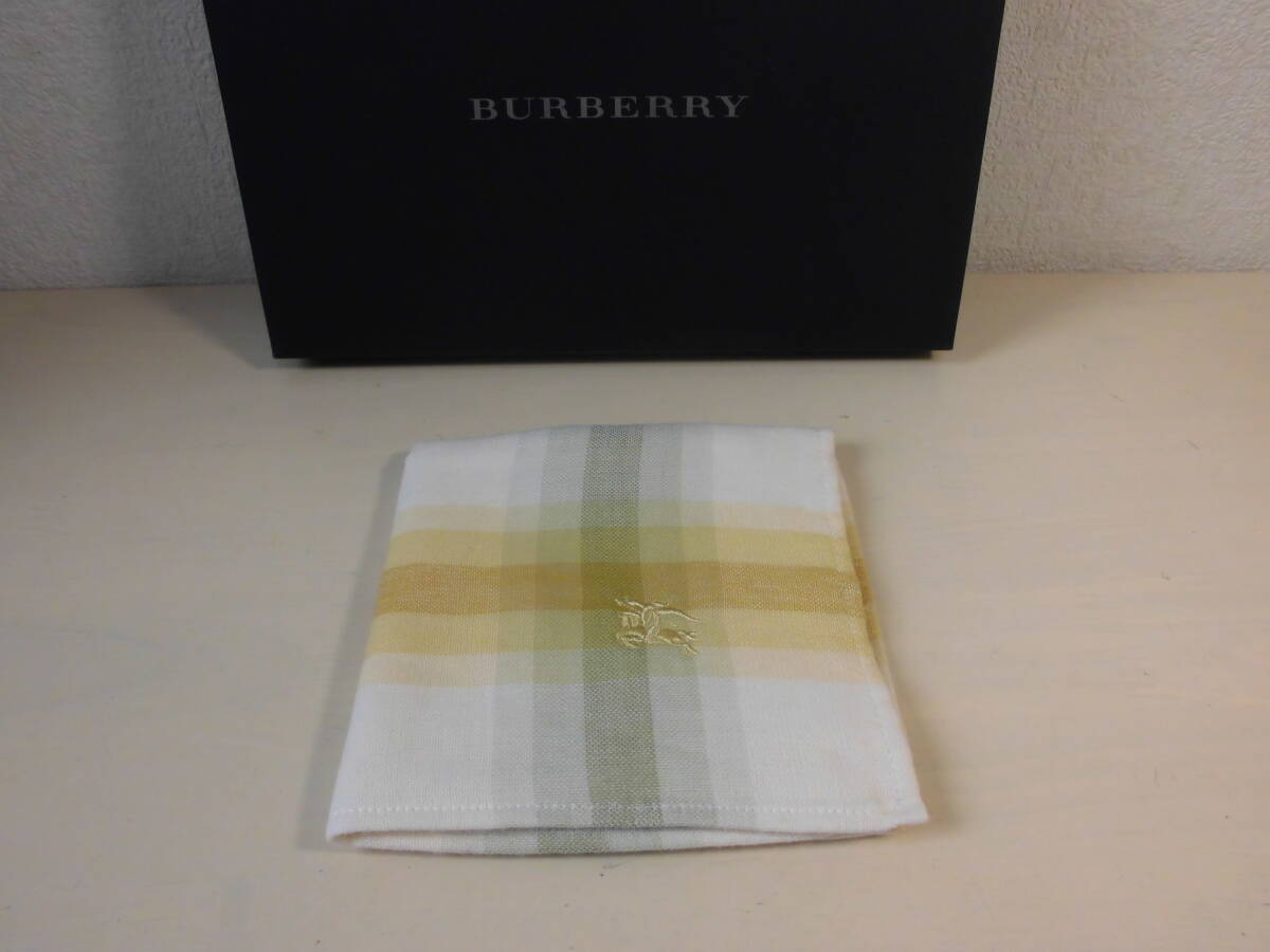 - 送料140円~ BURBERRY バーバリー タオルハンカチ イエロー ロゴ刺繍 ホースマーク