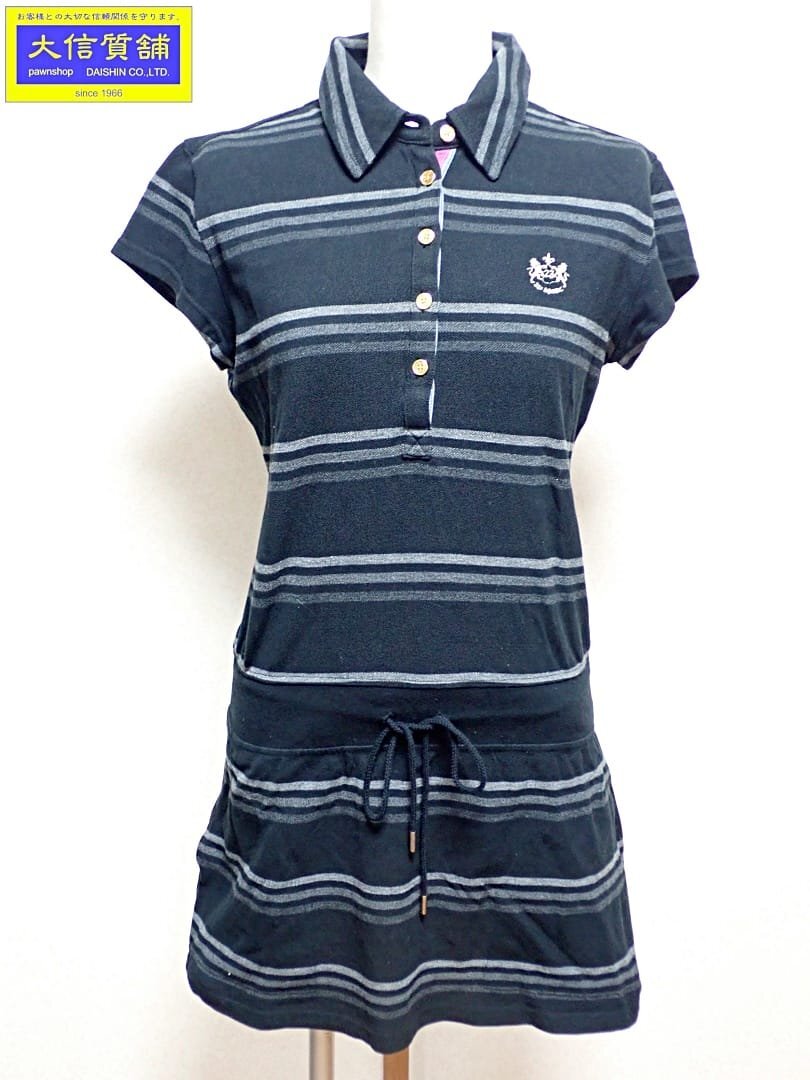 > 23区SPORT レディース 半袖ポロ ワンピース ゴルフウエア サイズS-M ブラックボーダー系 中古B 【送料無料】 A-8784