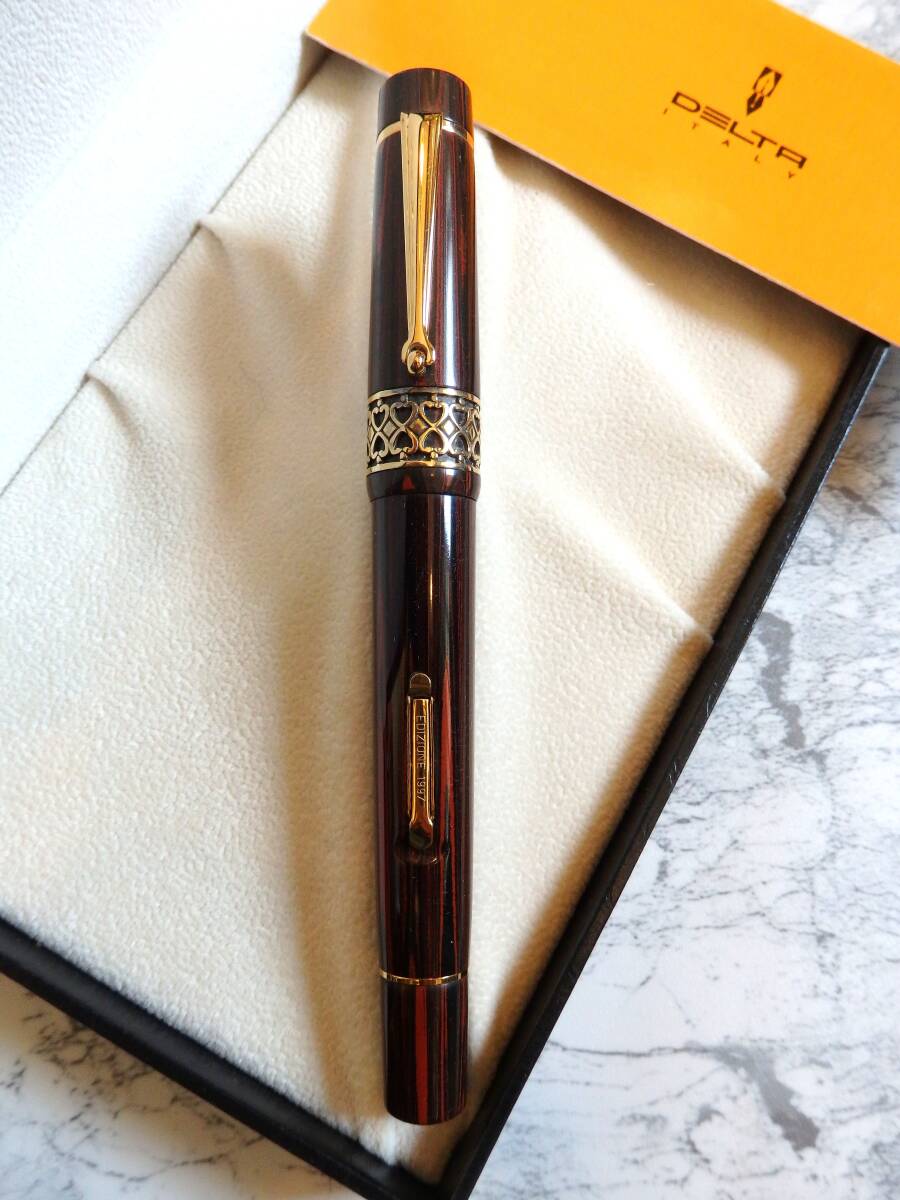 > ◆【きれいなお品】【送料410円~】デルタ エディジオーネ・マーブルエボナイト万年筆 ペン先:18K750ソリッドゴールド M