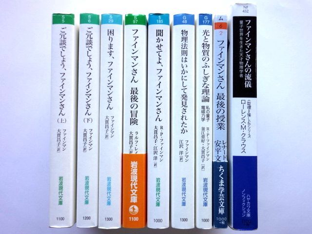- ファインマン 9冊 /ご冗談でしょう、困ります、聞かせてよ、ファインマンさん /物理法則はいかにして発見されたか/光と物質のふしぎな理論