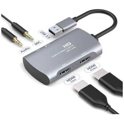 - HDMI キャプチャーボード USB3.0 30fps ストリーミングと録画 Switch PS4 Xbox Wii U Webcam対応、遅延なしHDMIパススルー/HDCP、ウルトラ
