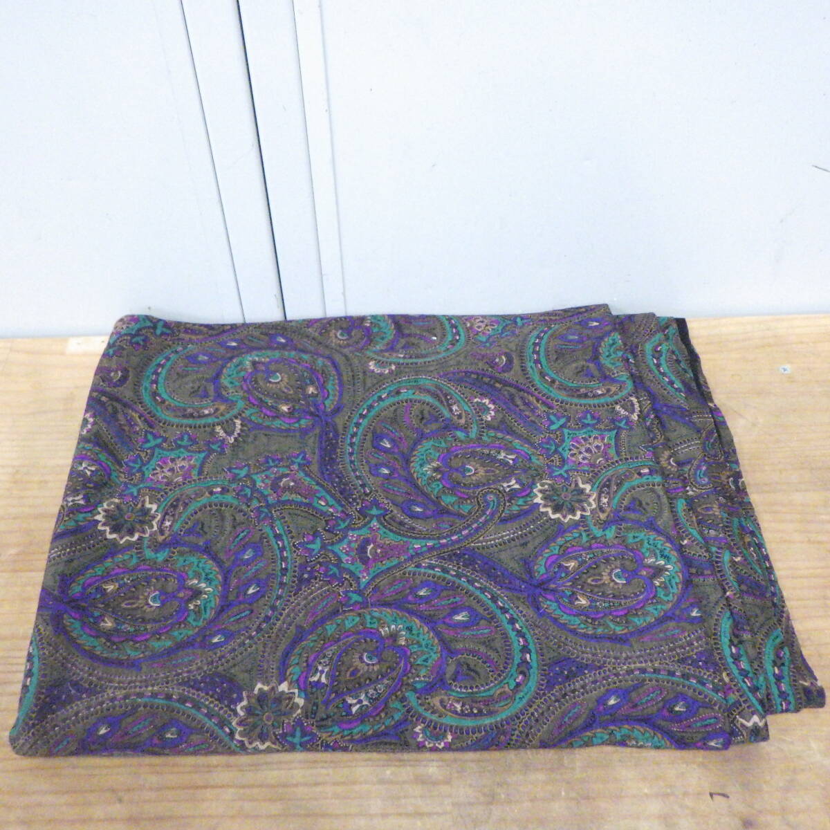 - 128×316 昭和 レトロ 洋服 生地 端切れ 素材 ペーズリー アジアン 紫 緑
