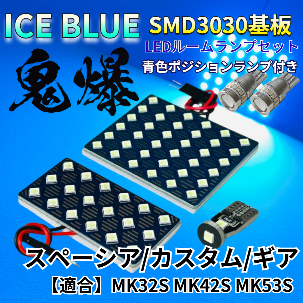 - 【アイスブルー】スペーシア/カスタム/ギア MK32S MK42S MK53S 鬼爆基板 3030SMD LED ルームランプ スモールランプ セット 車内灯 室内灯