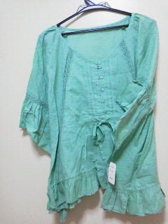 - ●新品綺麗なマリンブルー系可愛いチュニック前ステッチフリルデザインLLサイズ