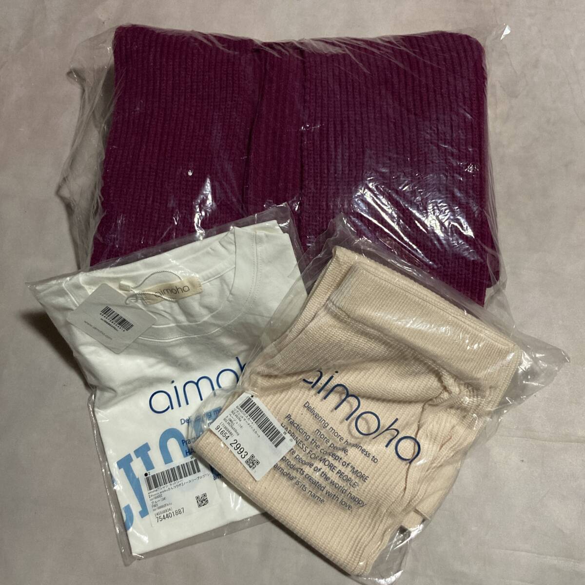 > 新品タグ付 3点 ☆ aimoha ☆ ニットロングカーディガン & リブマーメイド ロングスカート & Tシャツ / レディース / アイモハ / まとめ売