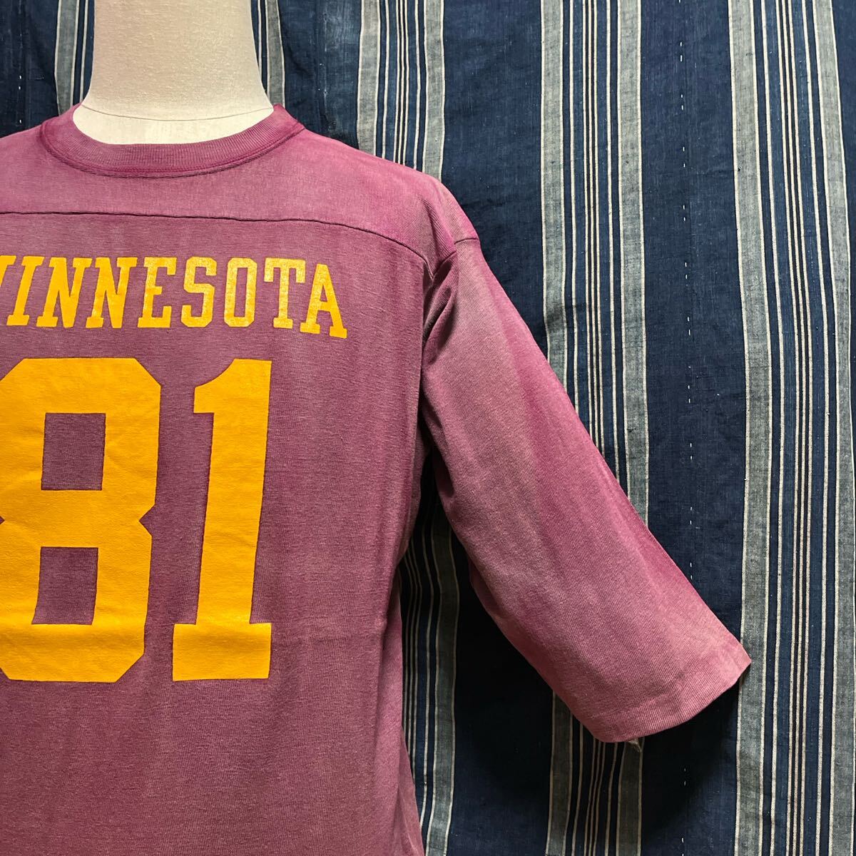 > rare 両面 バータグ 81 minnesota 70s champion football tshirt bordeaux cotton usa フットボール アメリカ製 70年代 ダメージ ボロ