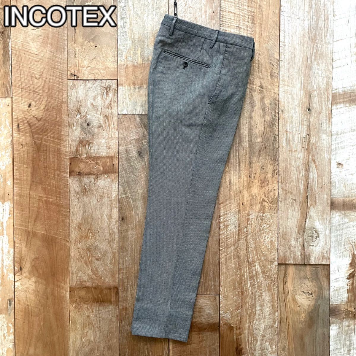 - 【美品】INCOTEX インコテックス SLIM FIT 織柄 テーパード ウール スラックス パンツ 42 グレー BEAMSF取扱