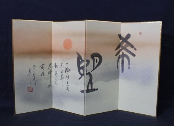 - 中村逸夫 「希望~」 書 甲骨文字 小サイズ 四曲屏風 D428