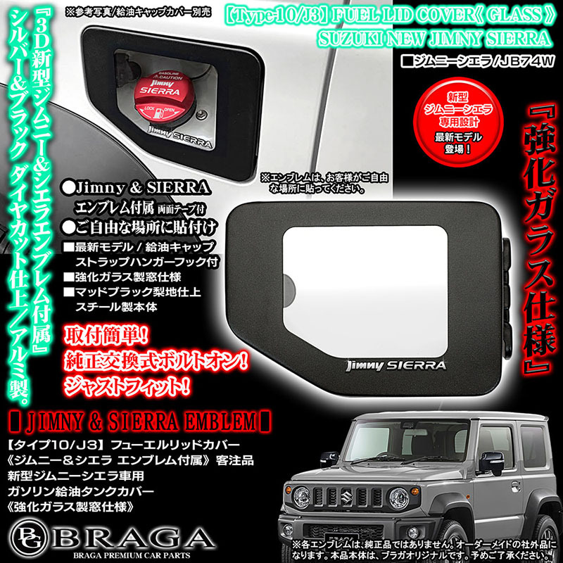 > 新型モデル/タイプ10/J3[ジムニー&シエラ エンブレム付属]客注品 給油口フューエル リッドカバー 強化ガラス/艶消し黒 新型シエラ用/ブラガ