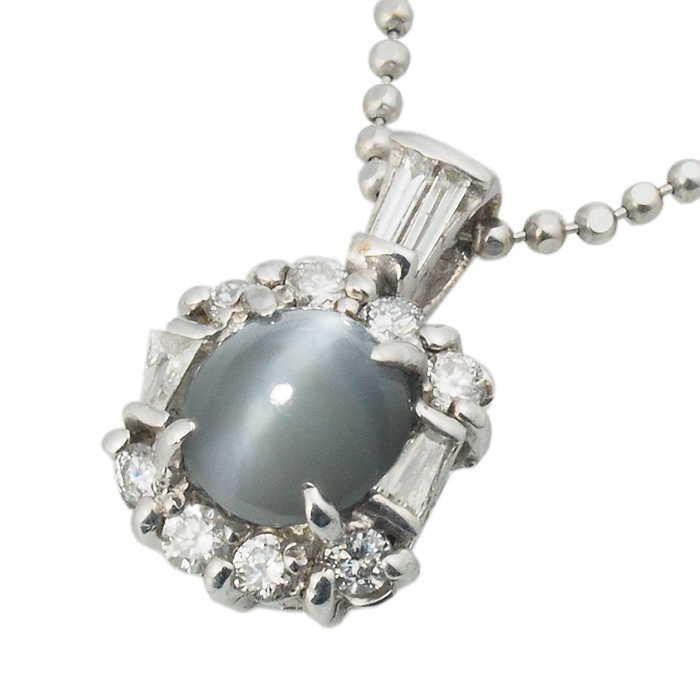 > 音羽屋■ クリソベリルキャッツアイ/0.70ct ダイヤ/0.17ct K18WG ネックレス 鑑別カード付き 仕上済【中古】