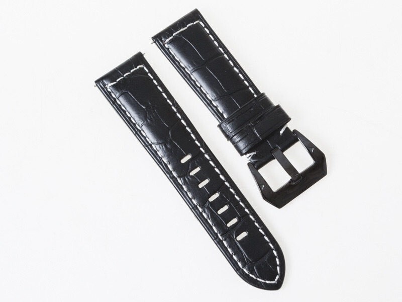 - 汎用 本革 腕時計 ベルト ブレスレット バンド 交換 ブラックバックル#幅22mm ワニ革風 ブラック