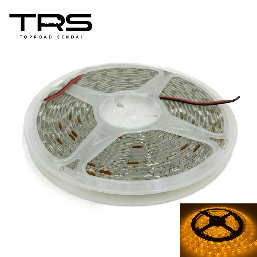 【商品名】TRS 高輝度LEDテープライト 24V 5m 防水 カット可能 SMD 5050 アンバー 328085【商品説明】■コスパ抜群の24V専用LEDモールライト■両面テープ装着済なのですぐに取り付け出来ます■6LED (約10cm) ごとにカットして利用可能■プラスとマイナスの配線に繋いでいただくだけで点灯します■防水等級はIP65なので屋外でも使えます。テープ部分は防水ですが、接続部分は完全防水ではありませんのでご注意下さい。■LEDなので低消費電力・長寿命で環境にも優しい照明です。【各種仕様】■入数:1個■品番:328085■電圧:24V専用 (12V不可)■サイズ:全長5m×幅10mm×厚さ2mm)■LEDカラー:アンバー■消費電力:14.4W/m■LED数:1mあたり60個■防水等級:IP65 (テープ部分)■付属品:接続配線×3、エンドキャップ×5■注意事項※コードリール・両面テープはロットにより画像と異なる場合がございます。※製品保証はLEDテープをカットする前の状態に限り有効とさせていただきます。カットする前に必ずLED不点灯の箇所がないかご確認下さい。※当製品は完全防水ではありません。配線接合部分や本体配線の付け根部分も、お客様ご自身で防水加工を施してご利用ください。 浸水による不良品の交換等は承っておりません。※当製品は常時点灯タイプです。ライトのオン/オフの切り替えが必要な場合はお客様ご自身でのスイッチなどのコントローラーの取り付けが必要です。その場合の故障などには弊社では責任を持ちません。【関連キーワード】led モール チューブライト LEDモール 24V 高輝度 トラック用品 ランプ カー用品 車 白 青 赤 緑 橙 電球色 オレンジ white 種類 防水 両面テープ カット可能 amber 高輝度 明るい おすすめ ふそう いすゞ UD サイドマーカー 2017プロフィア 2017レンジャー ファイブスターギガ 2017スーパーグレート パーフェクトクオン