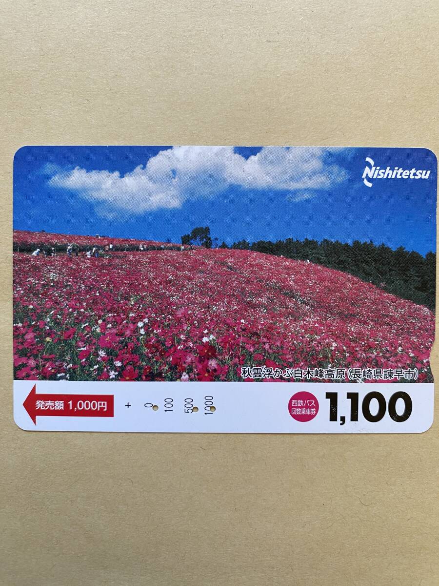 - 【使用済】 バスカード 西鉄バス 秋雲浮かぶ白木峰高原 (長崎県諫早市)
