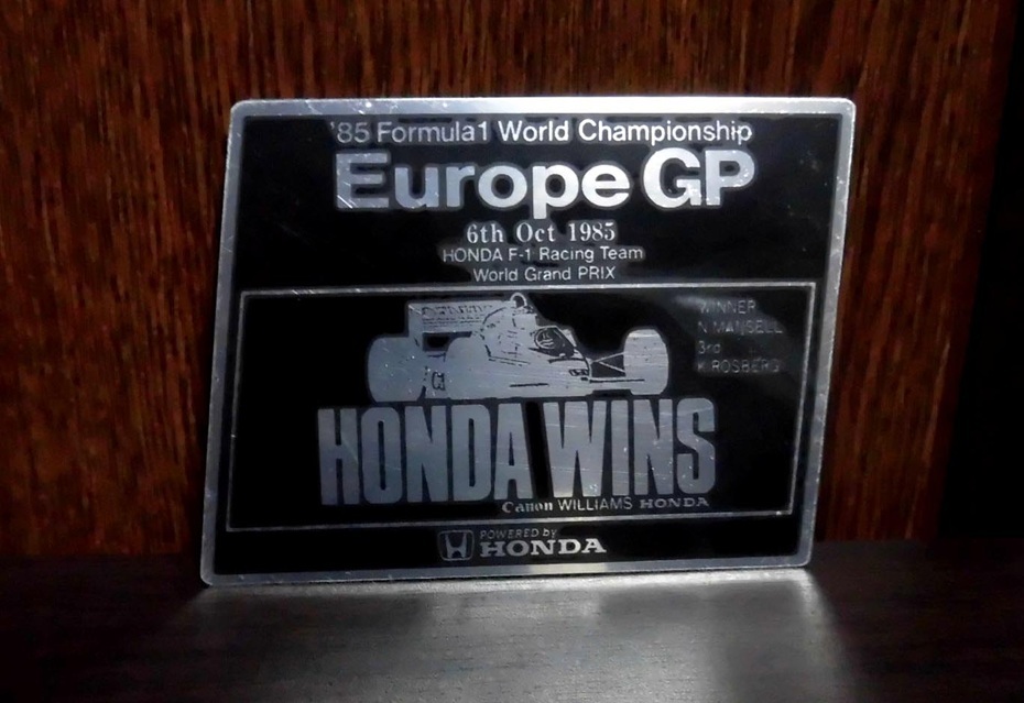 - 1985 '85 F1 ヨーロッパGP HONDA WINS メタルステッカー 82X63mm 当時物 未使用品/マンセル.ウィリアムズFW10ホンダ本田ロズベルグ