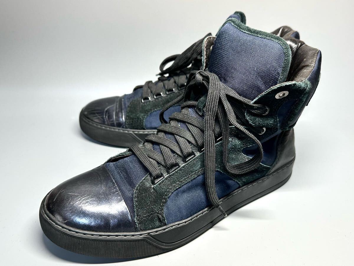 > 【即決】LANVIN ランバン メンズ 8 26cm程度 ハイカットスニーカー くつ シューズ ブラック ネイビー 黒 カジュアル オシャレ