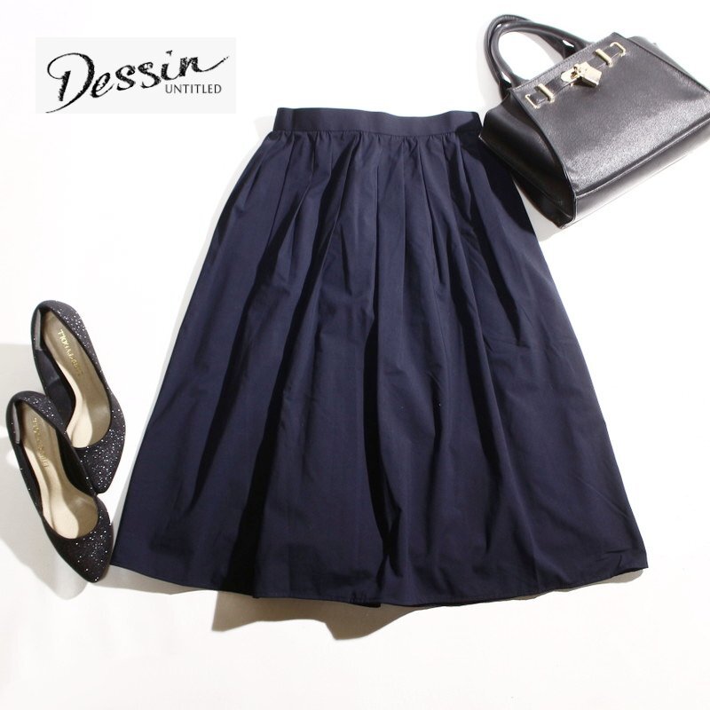 > 美品 Dessin デッサン UNTITLED アンタイトル 株)ワールド ポリエステル レーヨン ミディ ギャザースカート フレア スカート 2 ネイビー 紺