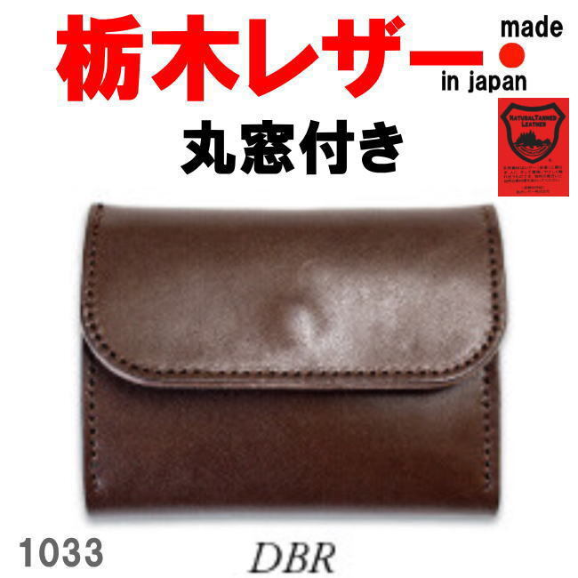 - ダークブラウン 栃木レザー 1033 丸窓付きコンパクト 三つ折り財布 牛革 メンズ レディース