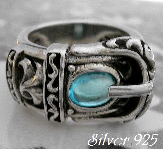 - シルバー925銀のブルージルコニア付ベルト バックル リング/13号.16号.18号より/S&A silver