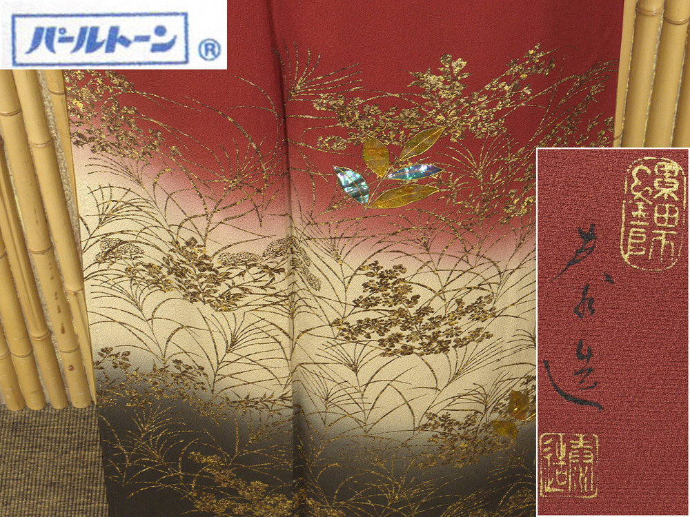 > 【京かんざし】t-295【宝飾螺鈿作家/甲斐泰造】訪問着 躾糸付未着用身丈159 cm裄丈67.5 cm★即決送料無料!